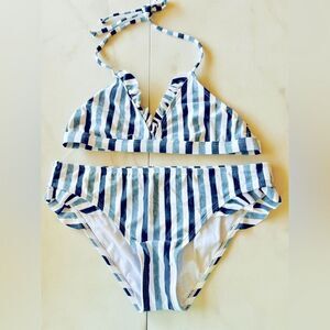 Nwt Splendid tie dye stripe white jean blue ruffle bikini set