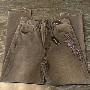 Express slim super high rise grey jeans with beaded embellishments
