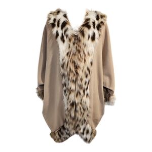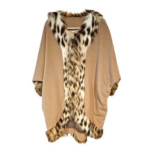 Nwt TAN A BY ADRIENNE LANDAU QUEENS KIMONO WITH FAUX FUR TRIM MEDIUM