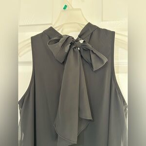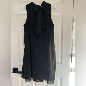 Nwt TASH & Sophie mock neck trapeze black sleeveless dress chiffon bow tie M
