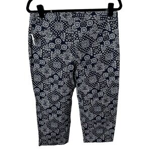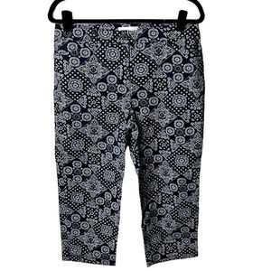 NWT Talbots Women's Navy & White Medallion Print Cropped Pants 6 Cropped Stretch
