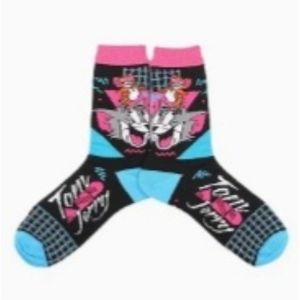 Nwt Tom and Jerry socks black hot pink blue cartoon fun socks unisex