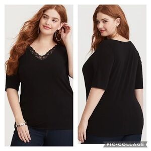 Nwt Torrid Black Jersey Knit & Lace Tee