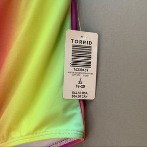 Brand new with tags. Torrid Rainbow strappy back swim bikini bathing suit swimsuit bottoms, women’s plus size 2, 2X. Perfect brand new condition! Vertical soft color change stripes with black strap accent in the back. Just beautiful! 14338459
