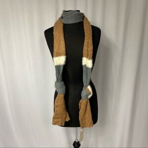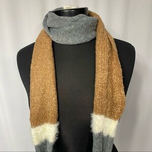 NWT Universal Thread Oblong Scarf: Tan & Gray. Approximate Measurements: Length: 78”. Material: 53% Acrylic, 21% Polyester, 6% Wool. Original Price: $20.