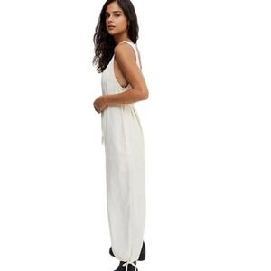 Sleeveless linen-blend jumpsuit cut in a loose & easy fit. Scoop neck with a self-tie belt at the waist and ties at the ankle. Finished with an open back. UO exclusive.