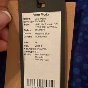 Nwt - Vero Moda Long Sleeve Polka Dot V Neck Top