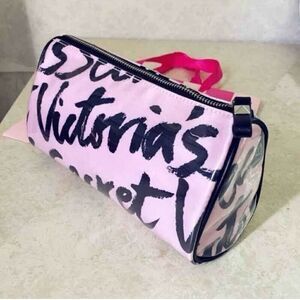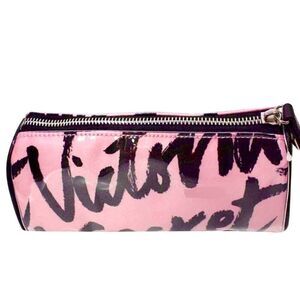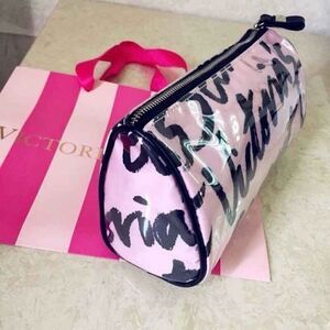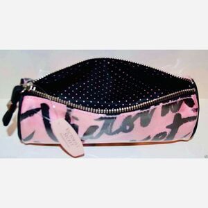 Nwt Victoria's Secret Signature Pink White Case Cosmetic Makeup Dots Lined Bag