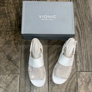 Nwt Vionic lthr & transparent “Karleen”platform adjustable strap sandals.