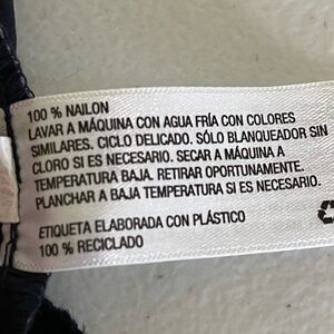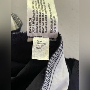 Lightweight nylon. Hidden side pockets. Elastic at the ankles. Elastic waist with drawstring. See photos for measurements.