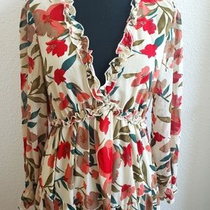 New without tag. Women Floral Maxi Layers Dress size S. Polyester 100 %. Fabric is slightly transparent. Elastic waist line. Elasticuffs. Baic color is cream.Dimensions laying flat : height from neck 57 " sleeve 23.5" between armpits 18 "