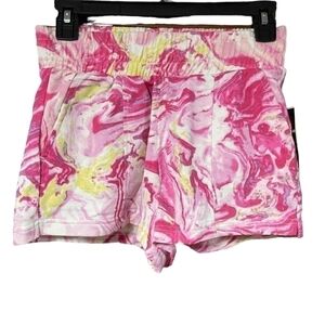 💕Nwt Womens No Boundaries Pink Abstract KNIT SHORTS Elastic Waist Small 3-5