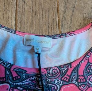 New with tags women's Simply Southern pink elephant print long sleeve tunic shirt. Size medium. Features pink and gray paisley print along with pink elephants. Lightweight and flowy