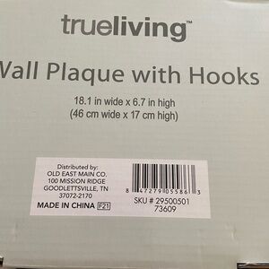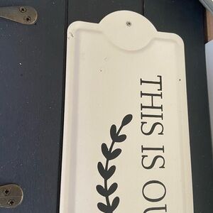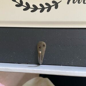 NWT wood with metal plate and four hooks wall hanging Home is our happy place it says black and cream