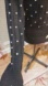 Chic black sweater with faux fur collar. Features pearl embellishments. Stylish and elegant.