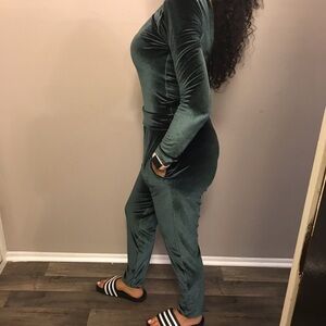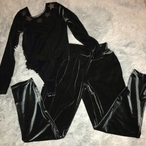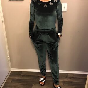 New with tags. Size XS Victoria Sport (Victoria’s Secret) dark green velvet set. Bodysuit with a low back and glitter stars. Joggers with a waistband and pockets. Originally $100.