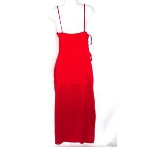 Nwt ZARA Red Satin Effect Side Tie Maxi Cocktail Dress Women's Size Small