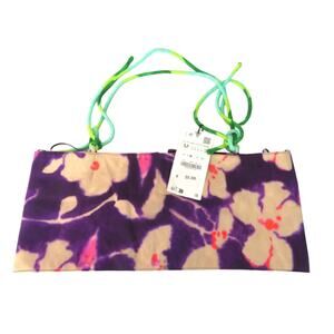 Nwt ZARA Women's Purple Floral Linen Blend Crop Top Sz L