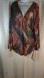 New with tag Zara sz Large, beautiful multi colored dark green/brown/sunset orange brush stroke pattern wrap side tie textured Kimono blouse. 100% polyester. Wash inside out. Roomy fit! 58" around chest, 32" in length. Could wear with a camisole or tank underneath. Great gift item!