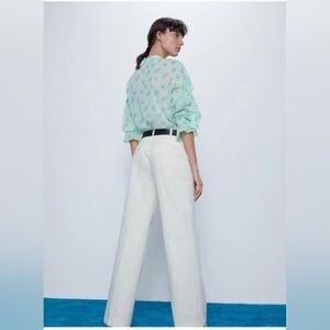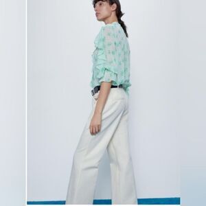 Nwt Zara floral green ruffle blouse bloggers fashion size Large