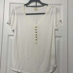 Designed in v-neck short sleeve regular fit top in POL's jersey w/ overlock stitching point