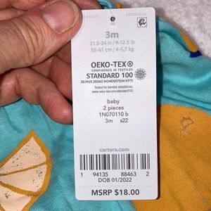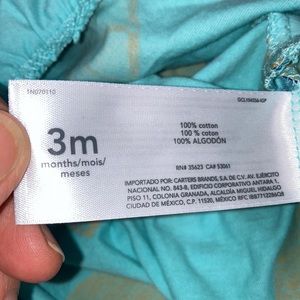NWT 100% cotton aqua with oranges fruit faux buttons size 3 months