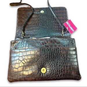 NWT Cosmopolitan Brown Faux Crocodile Clutch/Crossbody Purse