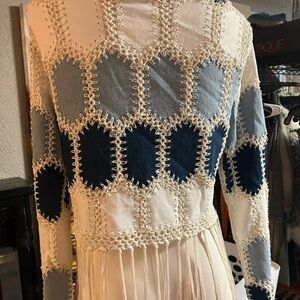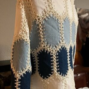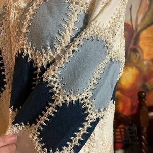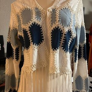Nwt designer crocheted white denim fringed jacket by Adore classy unique medium