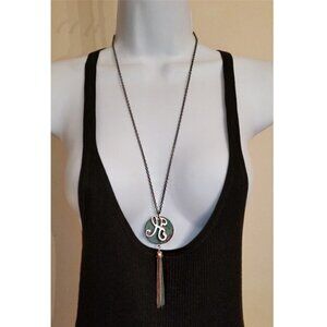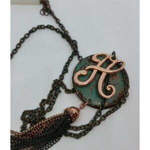 Nwt icon cellection initial letter H multi tone long tassel fringe necklace
