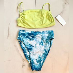 Nwt l*space Frenchi tie dye high waist bottom splash like green yellow bikini