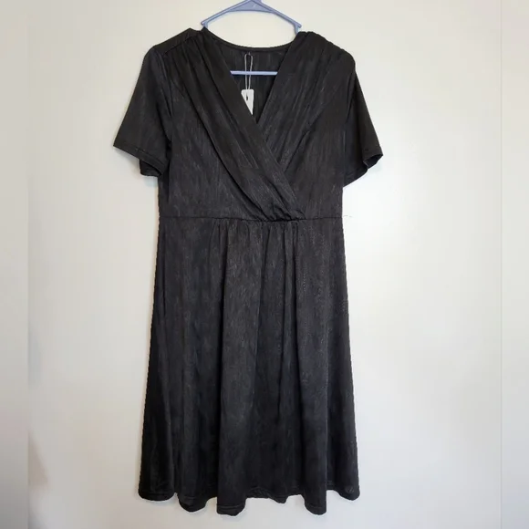 black dress with metallic finish, Size large- can measure ptp approx 19inches flat across, waist 15inches. length 40 inches