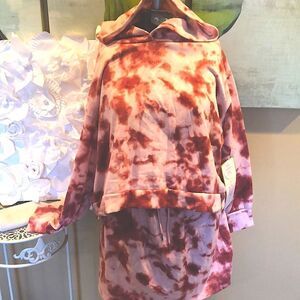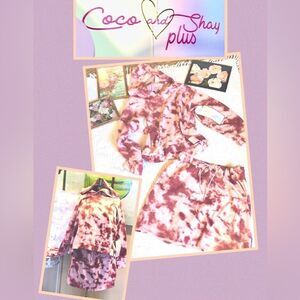 Nwt plus sz 2x hoodie & shorts pink tie die marble pattern