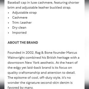 Nwt rag & bone Riley cashmere & leather cap. Osfm.