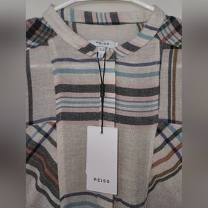Nwt reiss Amira light ground check plaid button down in cream size 8. wool/viscose blend. made in turkey.