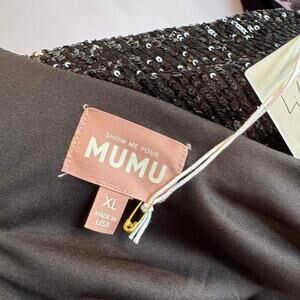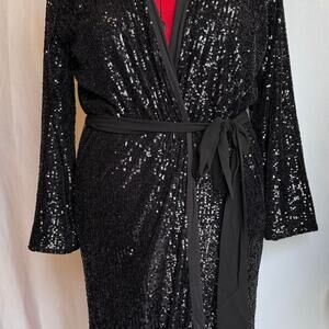 NWT Show Me Your Mumu Black sequin wrap dress with long sleeves and belt