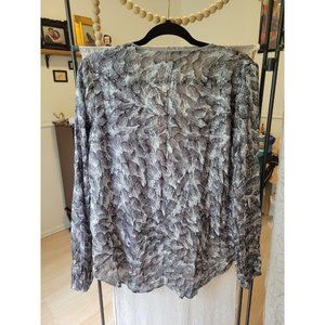 Nwt sz 10 white house black market silver feather print surplice blouse metallic