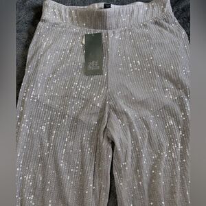 Nwt women’s XXS light gray sequin pants mid rise and flair bottom