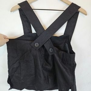 Brand new with tag! Adorable oversized linen tank top with big black buttons at each of the connections to the straps! Wide straps criss cross in back. Super breathable! Dress up or dress down.