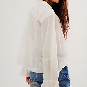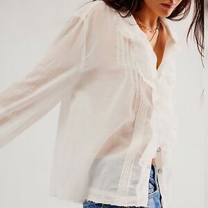 Nwt Free People - L Savannah Ruffle Button Down Blouse Ivory New $128