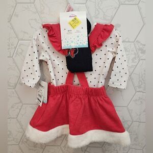 -Minnie Mouse Pinefore Skirt set, 3pc (pinefore, long sleeve tee and tight)