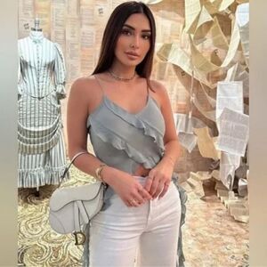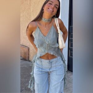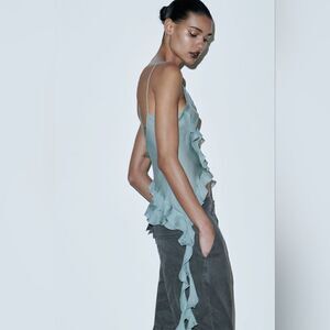 Nwt ZARA VIRAL SEMI-SHEER TANK BLOUSE ZARA EMERALD NWT