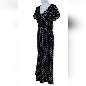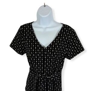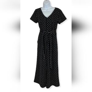 Nwt~ann TAYLOR FACTORY ~Black White KNIT Tie Waist Wide Crop Leg JUMPSUIT~Small
