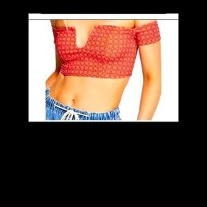 New free people crop top, pit to pit flat 17”, shoulder to hem 9.5”. 97% rayon 3% spandex