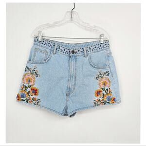 Nwtg Farm Rio Summer Garden Embroidered Denim Shorts Size 31