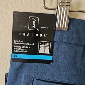 PGA TOUR Men’s 9” Flat Front Horizontal Textured Golf Shorts, 4-Way Stretch, Moisture-Wicking, Sun Protection