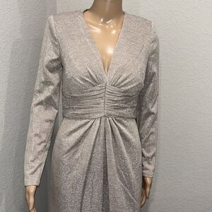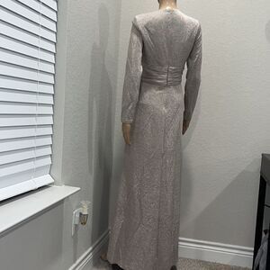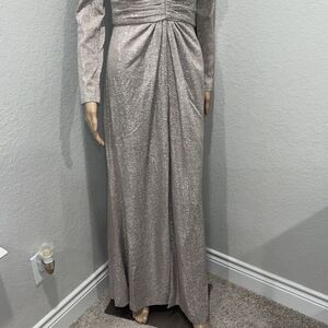 Nwt vintage Kay Unger New York champagne colored designer gown. Pit to pit 18”, waist 14.5”, hips 18”, length 60”, sleeves 23”-23.5”. Shoulder pads, back slit, very beautiful. Fully lined. Excellent condition.