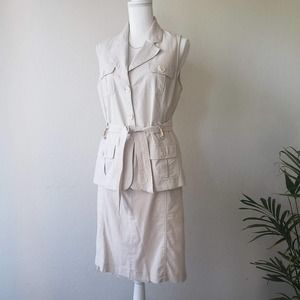 Ny & Co Safari 2 Piece Vest and Skirt Set Size Large Beige