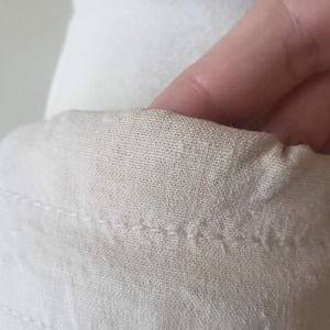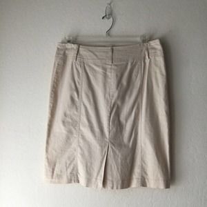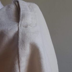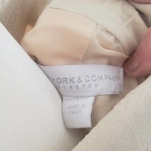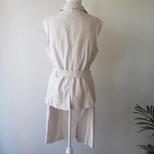 New York and Company light beige waist coat and straight skirt. Safari vibes with ribbon tie belt, cargo pockets and faux bamboo belt loops. Very good condition, small spot on back of collar and loose thread on skirt, both pictured. Measurements approx lay flat: Vest, Bust 19" length 25" skirt, waist 17.5" length 23". Modeled on size 12 my measurements are 42x34x44 and this is too small on me. Neutral vest and pencil skirt set.
