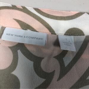 Features ruffled detail , sleeveless, pull on style with shade of peach whit and tan , scoop neck