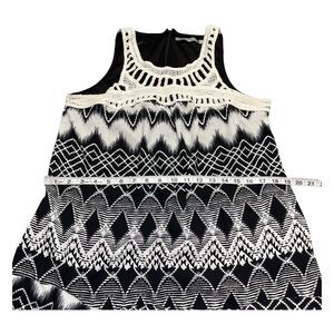 Ny Collection Maxi Dress Girls Small Black White Geometric Crochet Neck Back Zip